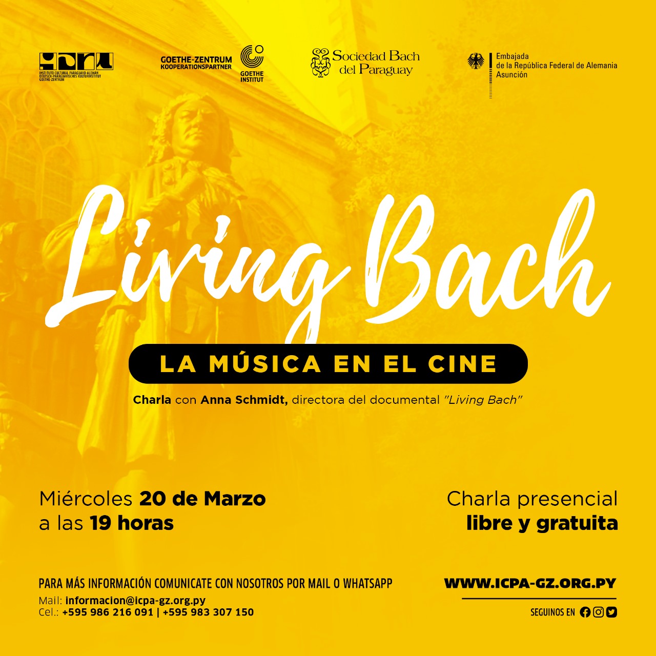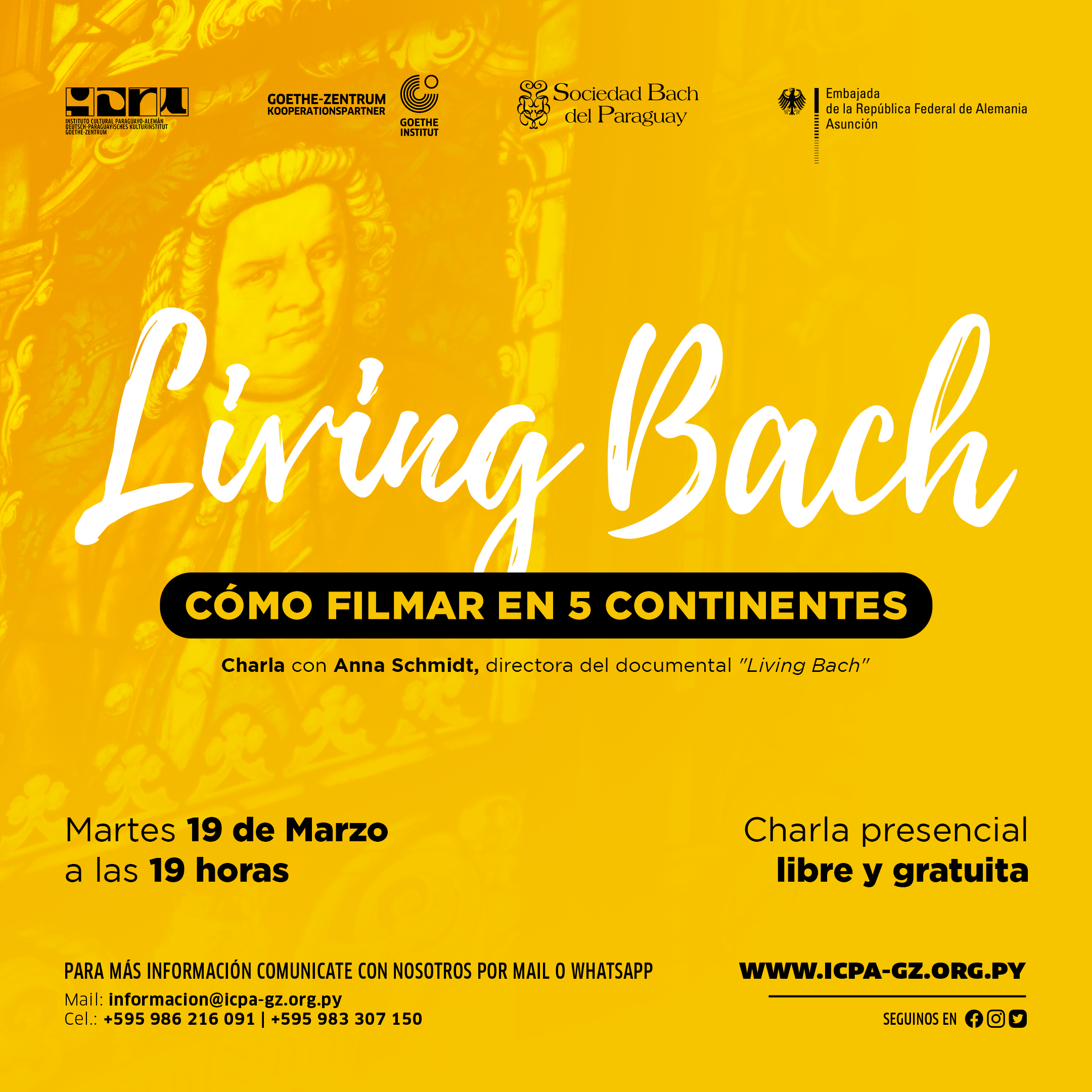 Informationsgespräch mit Anna Schmidt | @schmidtfilm / Instagram Regisseurin des Dokumentarfilms "Living Bach" Mittwoch, 20. März 2024 19:00 Uhr Freier