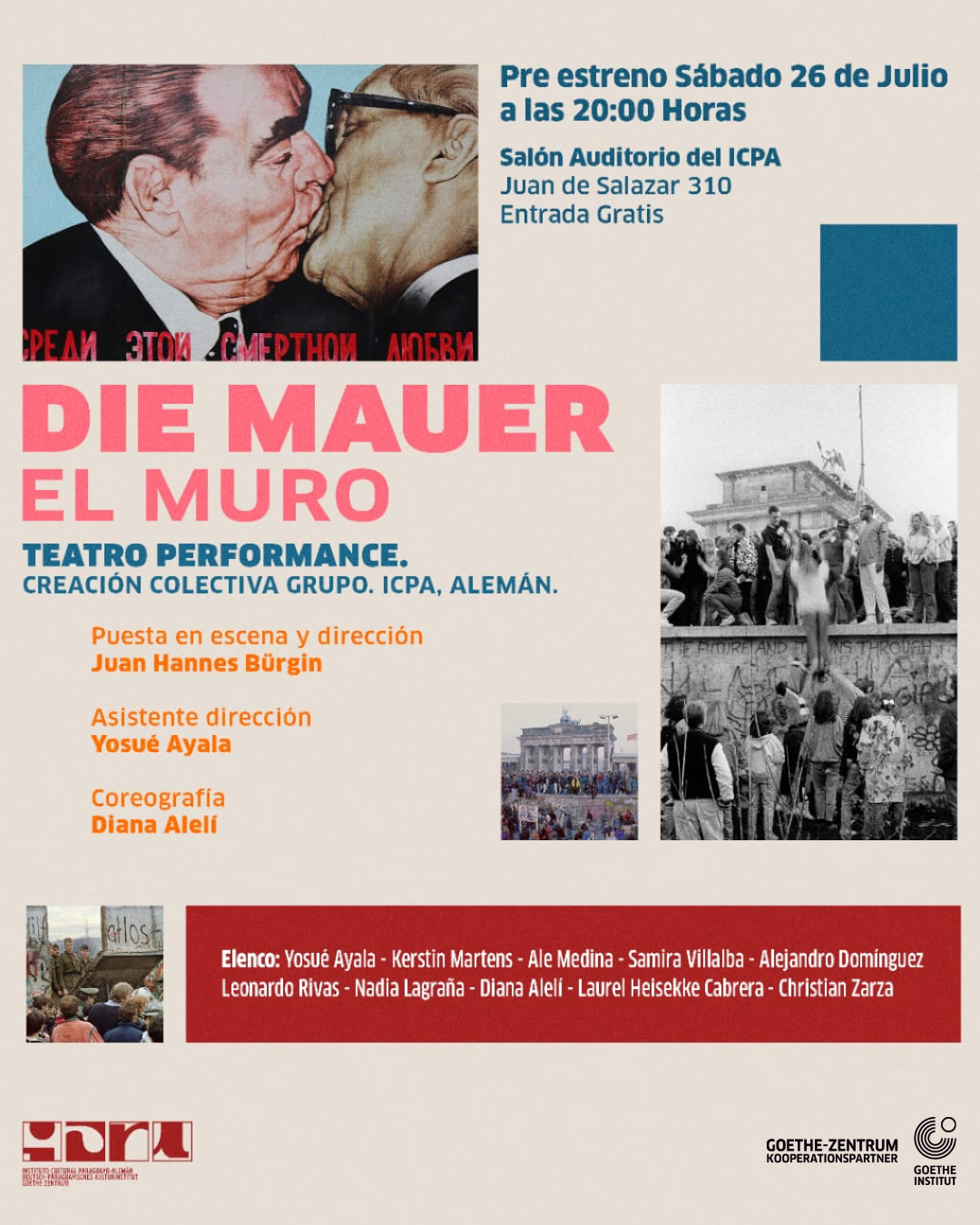 Das ICPA-GZ präsentiert „Die Mauer“, auf Deutsch „El Muro“. Es handelt sich um eine Gemeinschaftsproduktion, die aus dem Workshop „Deutsch