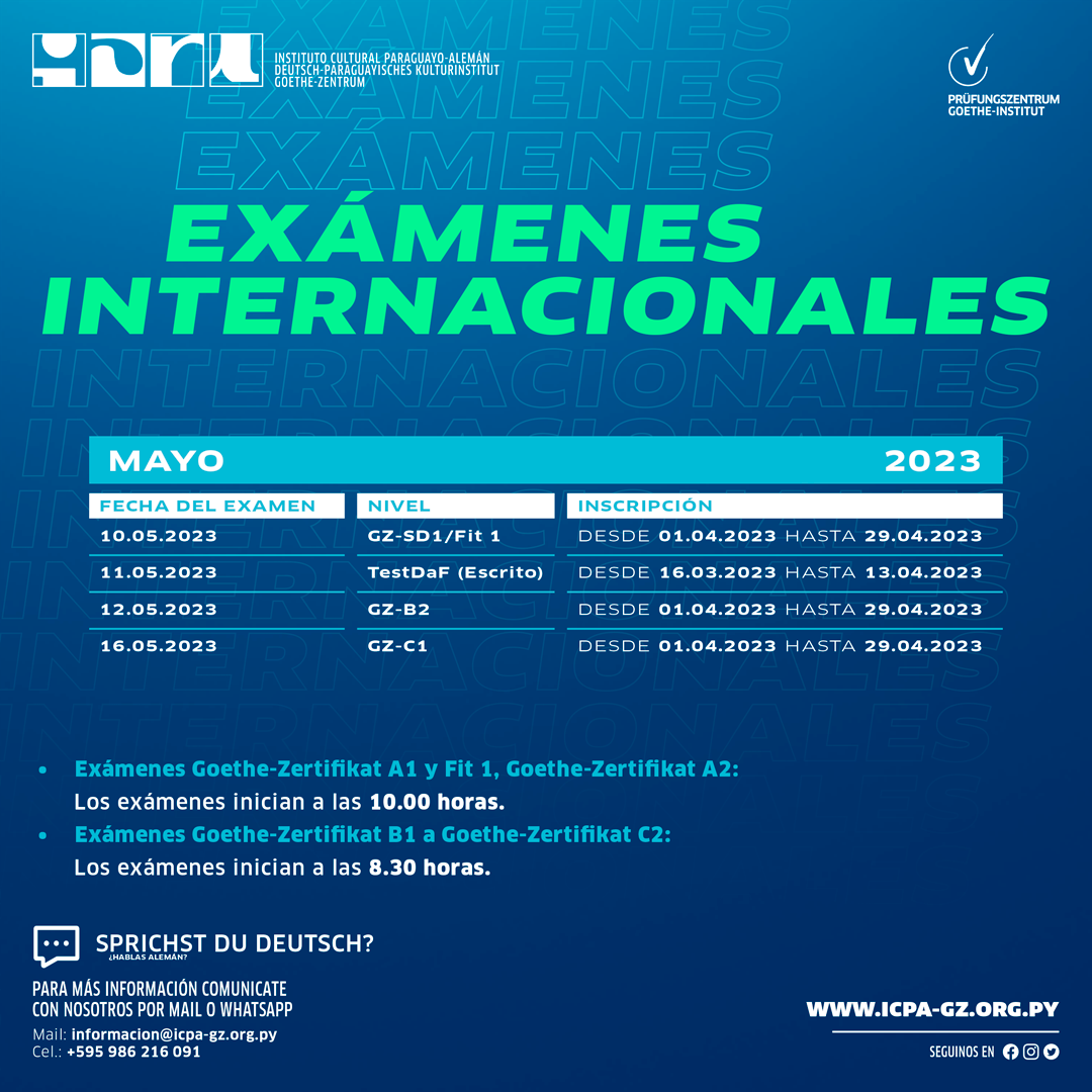 Para más información +595 983 307 150 | WhatsApp +595 (021) 22 44 55 | Teléfono informacion@icpa-gz.org.py https://icpa-gz.org.py/examenes-internacionales/