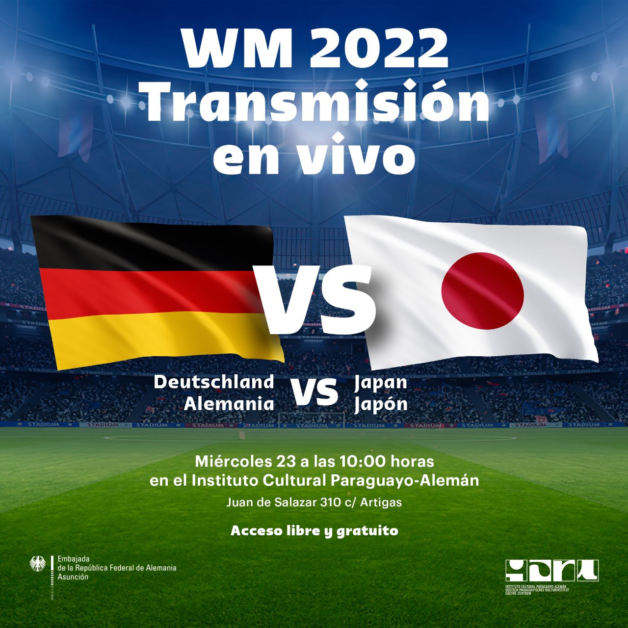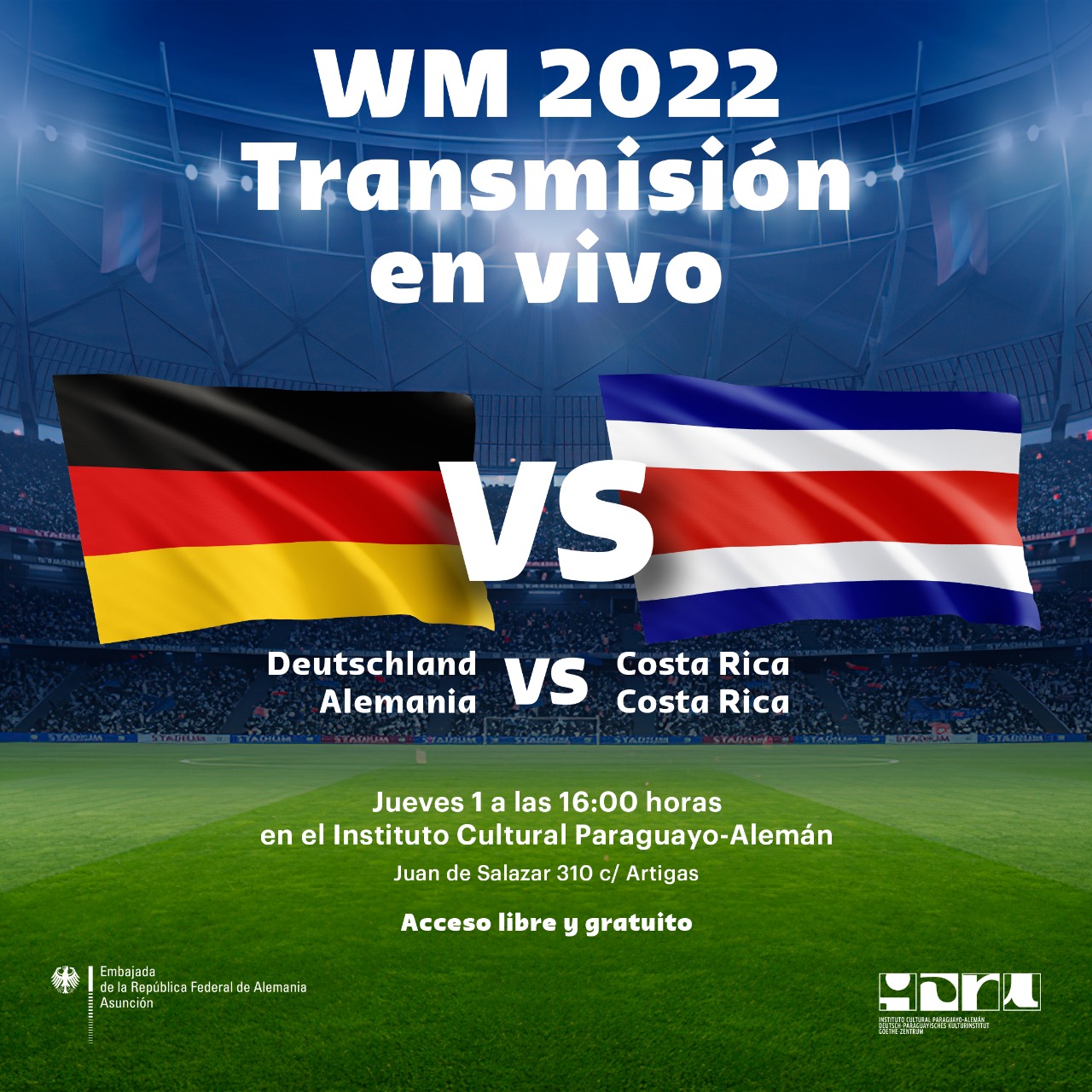 Inicio del partido | 16:00 hs. Portones abiertos | 15:30 horas Ingreso libre y gratuito Explanada del ICPA-GZ Juan de