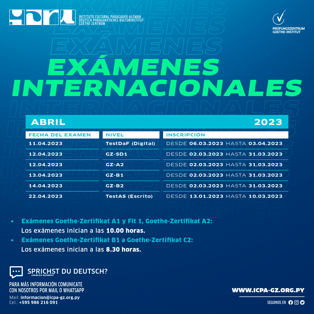 Para más información +595 983 307 150 | WhatsApp +595 (021) 22 44 55 | Teléfono informacion@icpa-gz.org.py https://icpa-gz.org.py/examenes-internacionales/