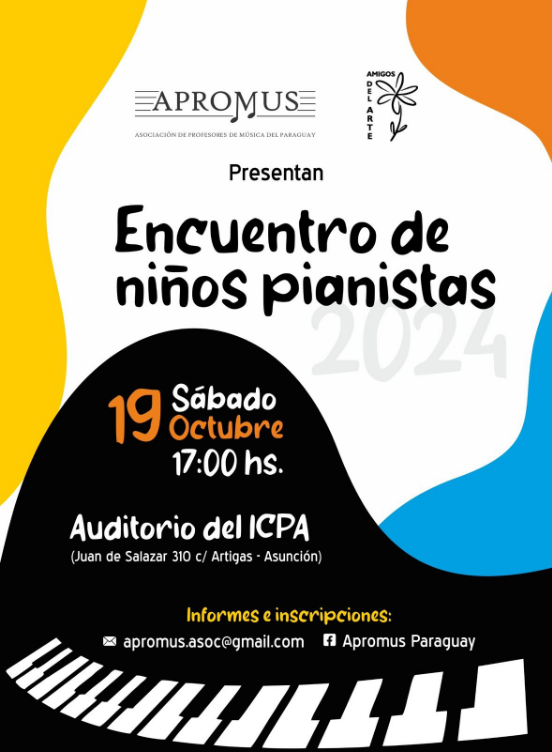 Encuentro de Niños Pianistas organizado por APROMUS Fecha: Sábado 19 de octubre 2024 Horario: 17:00 Hs. Lugar: Salón Roland Rasmussen