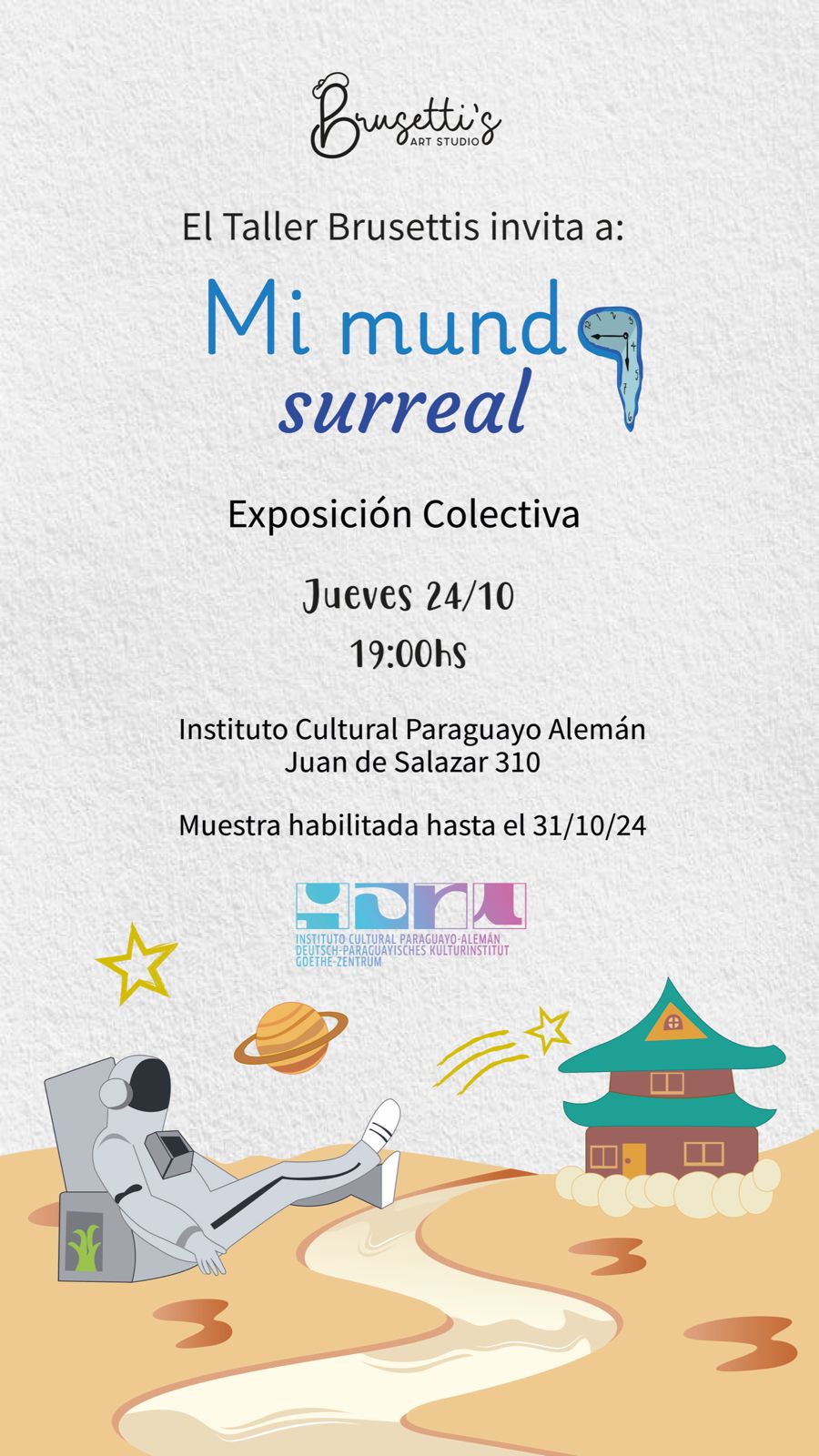 El taller de arte "Brusgetti's" invita a la exposición colectiva "Mi Mundo Surreal" Fecha: Jueves 24 de octubre 2024 Horario: