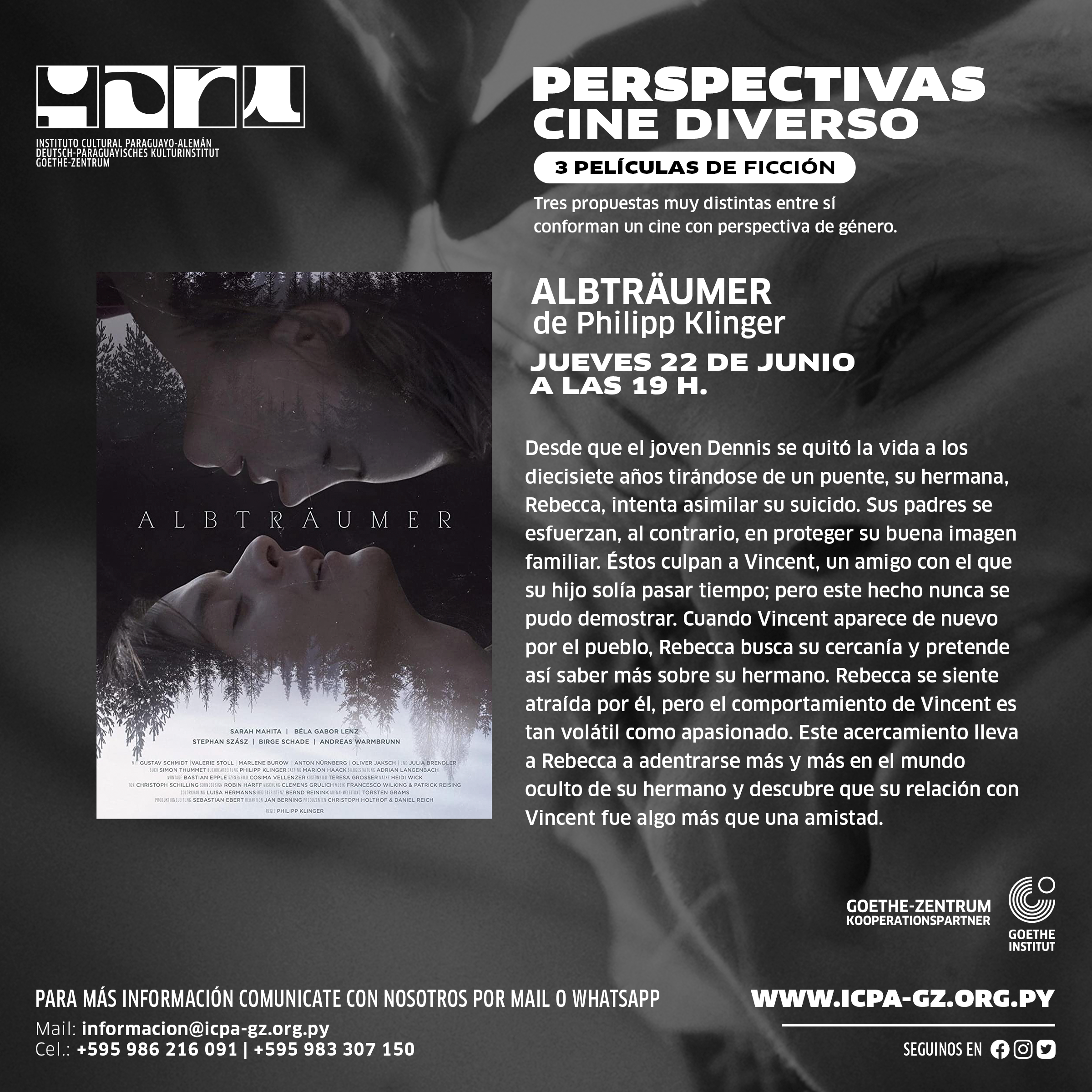 El Instituto Cultural Paraguayo-Alemán, con apoyo del Goethe Institut, invita a todo el público interesado a los ciclos de cine