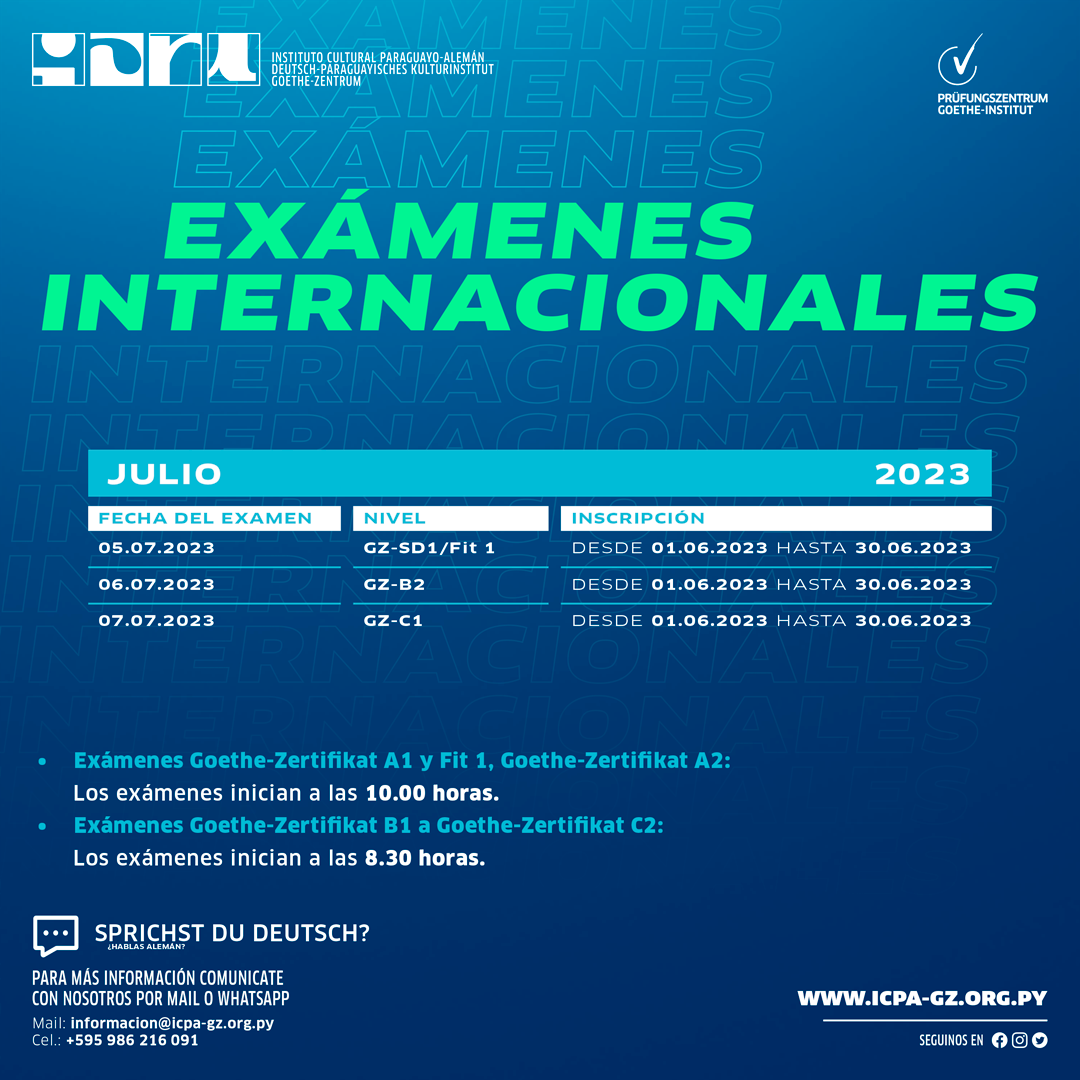 Para más información +595 983 307 150 | WhatsApp +595 (021) 22 44 55 | Teléfono informacion@icpa-gz.org.py https://icpa-gz.org.py/examenes-internacionales/ |